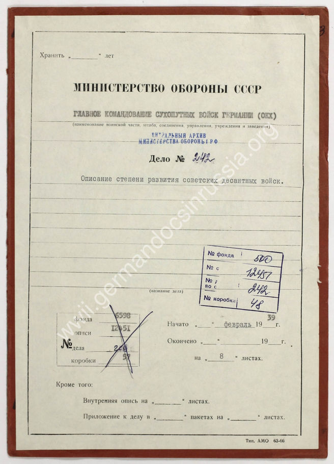 Top CAMO - Bestand 500 Findbuch 12451 - Oberkommando des Heeres (OKH) Akte 242. OKH-Abteilung Fremde Heere Ost, Referat IIb: Ausarbeitun...