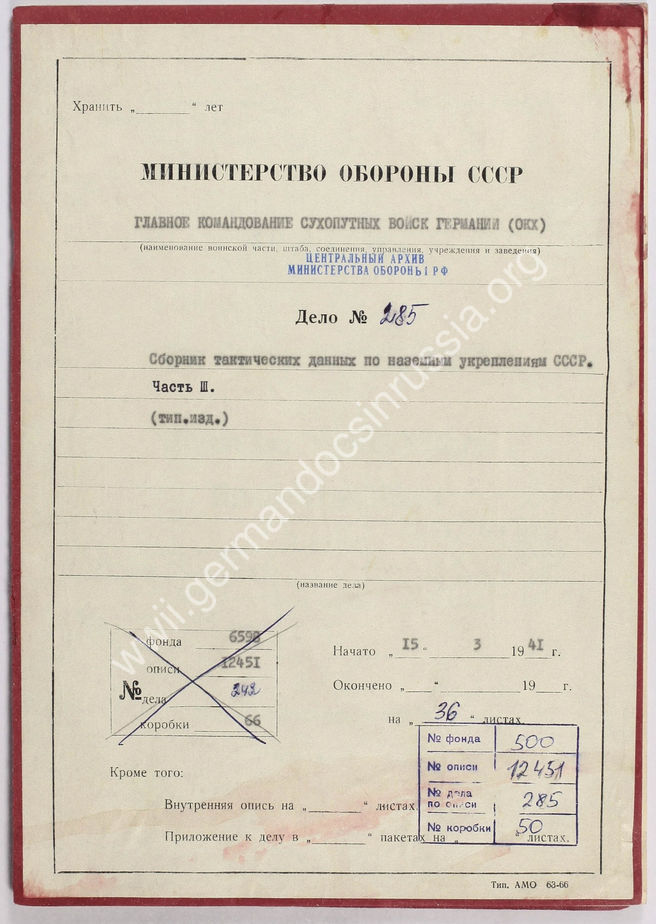 Top CAMO - Bestand 500 Findbuch 12451 - Oberkommando des Heeres (OKH) Akte 285. OKH-Abteilung Fremde Heere Ost, Referat IIb: Studie - Ta...