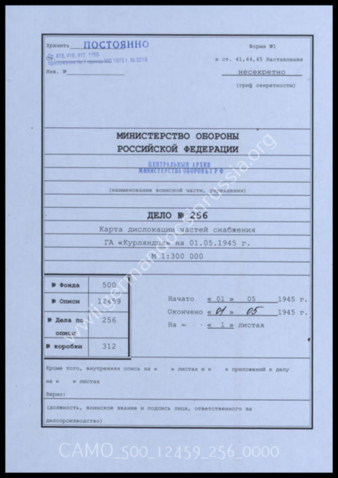 Top CAMO - Bestand 500 Findbuch 12459 - Heeresgruppe Nord Akte 256. Unterlagen des Oberquartiermeisters der Heeresgruppe Kur...