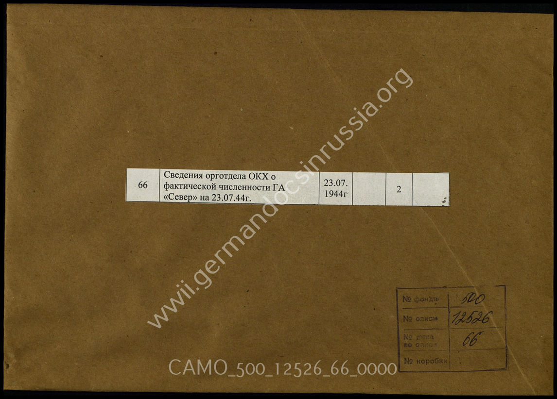 Akte 66: Unterlagen der Organisationsabteilung I des Generalstabes des Heeres: Notiz zur Iststärke der Heeresgruppe Nord