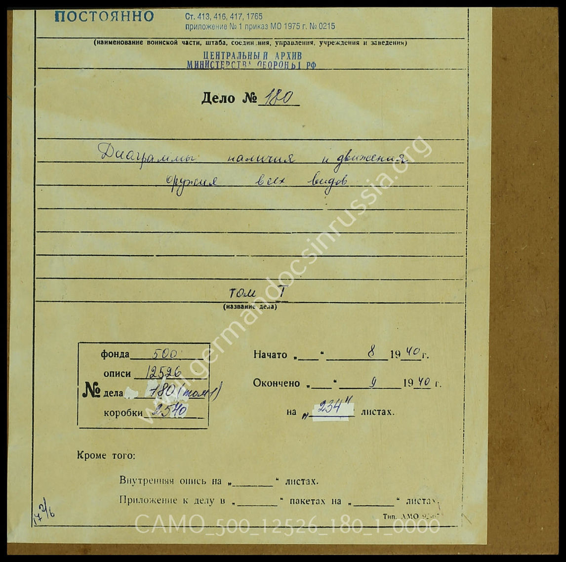 Akte 180: Unterlagen des Stabes II (Rüstung) beim Chef Heeresrüstung und Befehlshaber des Ersatzheeres: Übersichten zur Entwicklung des Bestandes an Munition beim Heer – Stand März, April, Juni, Juli, August, September 1940