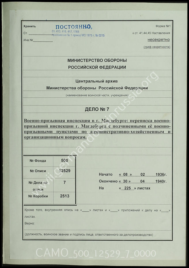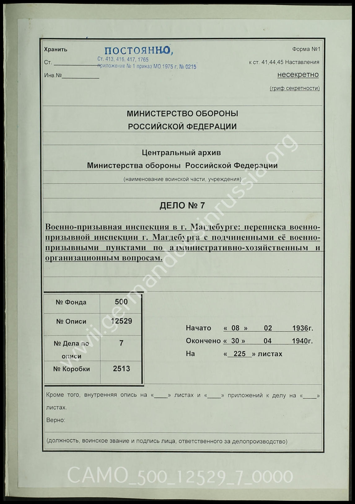 Top CAMO - Bestand 500 Findbuch 12529 - Wehrkreiskommandos, Wehrersatzinspektionen Akte 7. Unterlagen der Wehrersatzinspektion Magdeburg/Wehrmeldeamt...