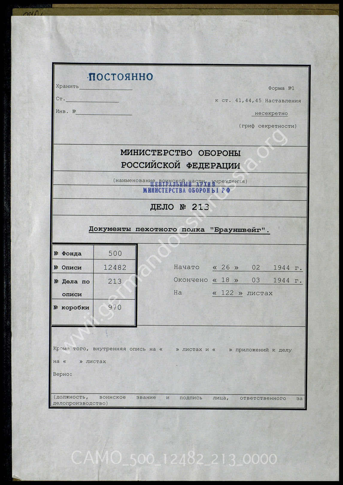 Top CAMO - Bestand 500 Findbuch 12482 - Regimenter der Wehrmacht Akte 213. Unterlagen der Ia-Abteilung des (Polizei)Regiments „von B...
