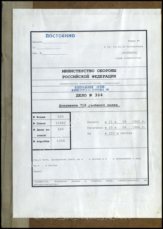 Top CAMO - Bestand 500 Findbuch 12482 - Regimenter der Wehrmacht Akte 394. Unterlagen der Ia-Abteilung des Grenadier-Feld-Ausbildun...