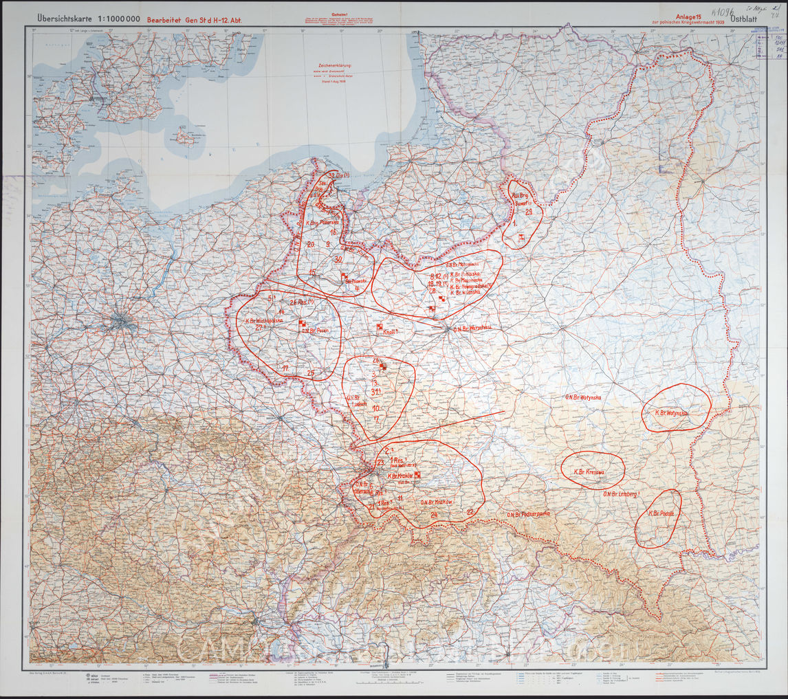 Akte 741. Unterlagen der OKH-Abteilung Fremde Heere Ost: Karte zur Verteilung der polnischen Kräfte bei der Sicherung der deutsch-polnischen Grenze – Stand 1.8.1939, M 1:1.000.000.