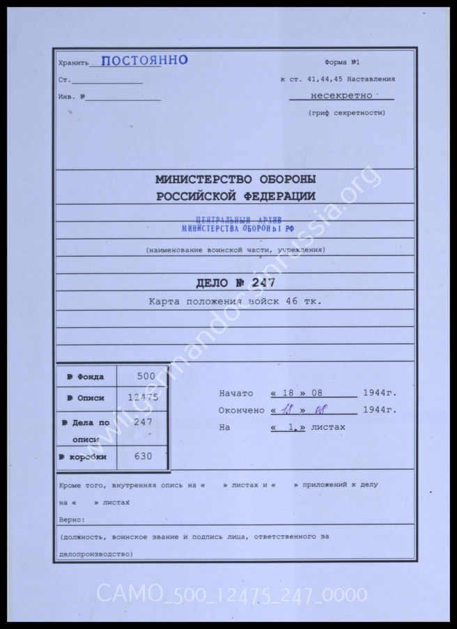 Top CAMO - Bestand 500 Findbuch 12475 - Panzerkorps Akte 247. Unterlagen der Ia-Abteilung des Generalkommandos des XX...