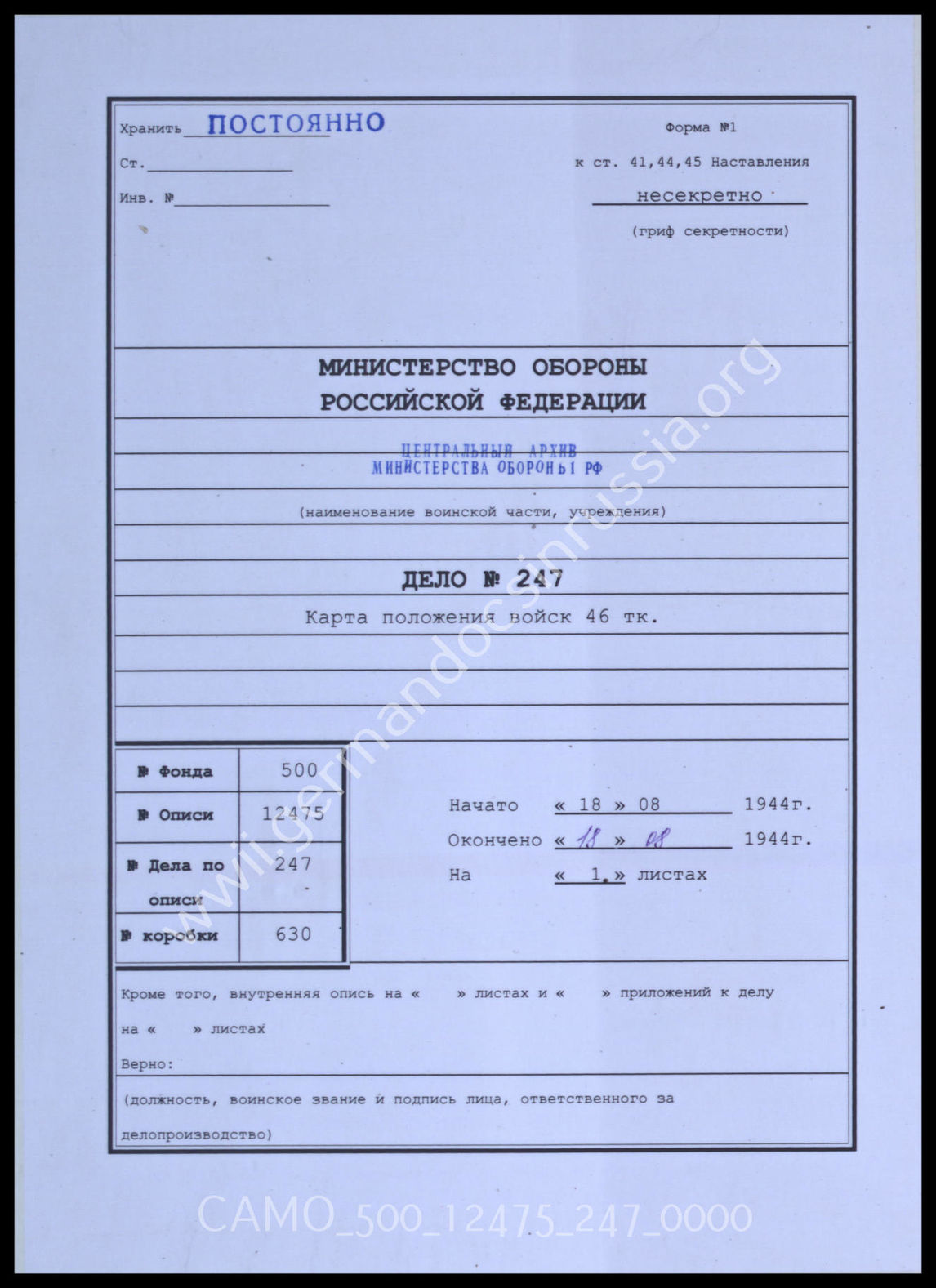 Die Webseite enthält digitalisierte Archivdokumente, die in verschiedenen Archiven der Russischen Föderation aufbewahrt werden. Es handelt sich hierbei um offizielles Schriftgutverschiedener Staaten. Die Akten werden auf der Webseite in unveränderter Form wiedergegeben und den Nutzern/Nutzerinnen ausschließlich für Zwecke der Wissenschaft und der Bildung bereitgestellt.