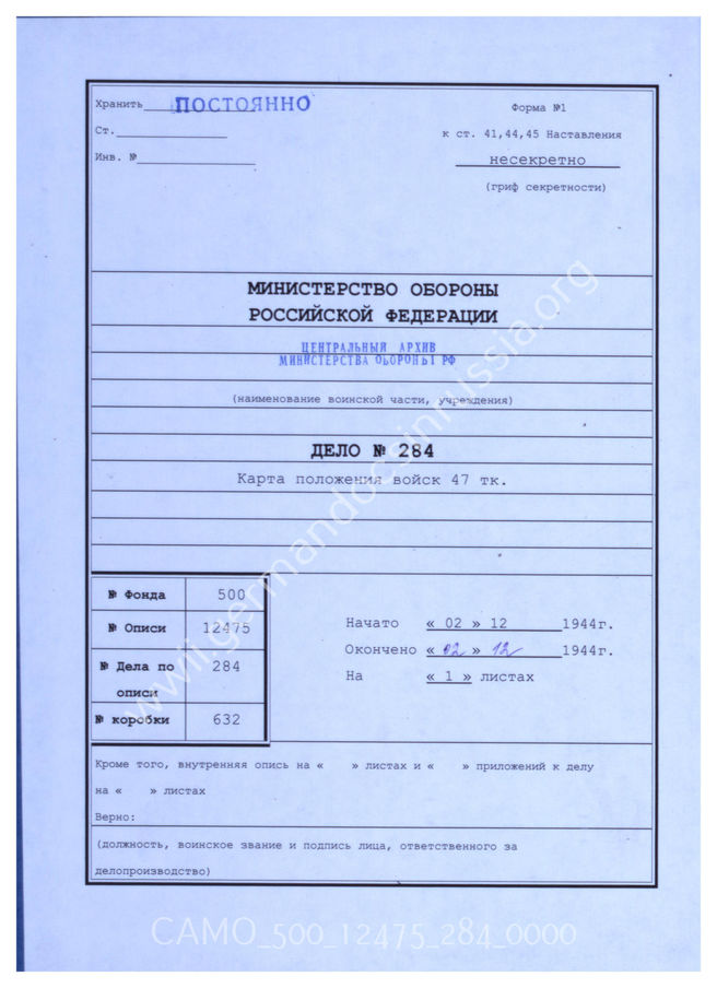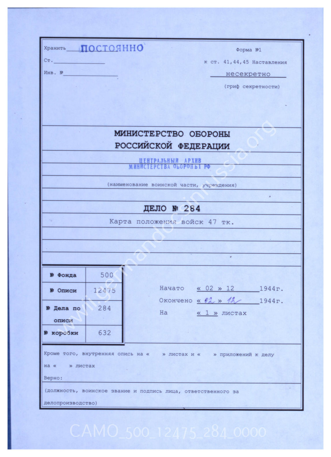 Top CAMO - Bestand 500 Findbuch 12475 - Panzerkorps Akte 284. Unterlagen der Ia-Abteilung des Generalkommandos des XX...