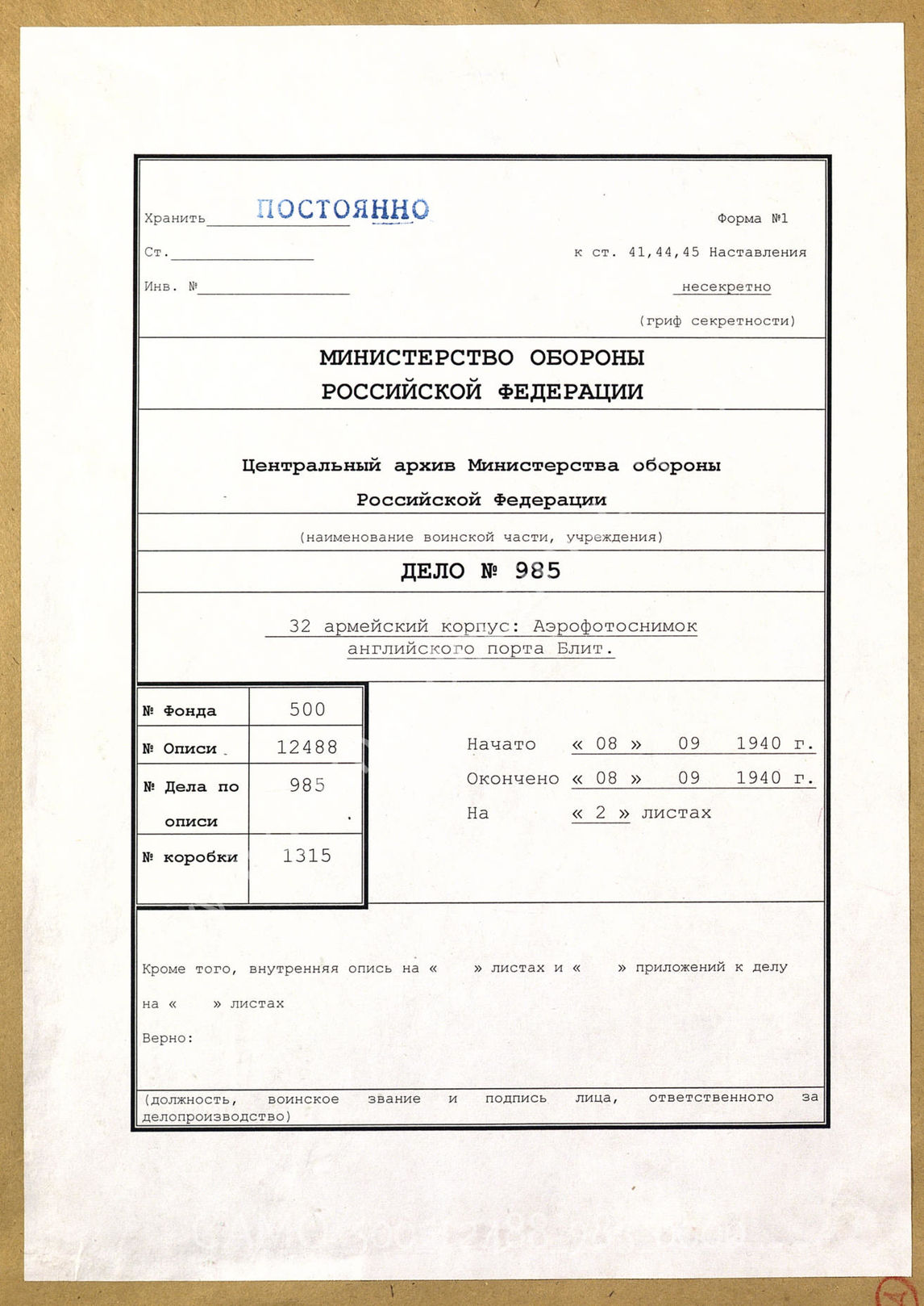 Top CAMO - Bestand 500 Findbuch 12488 - Unterlagen Operation "Seelöwe" Akte 985: Unterlagen der Ic-Abteilung des Generalkommandos des XXXV...