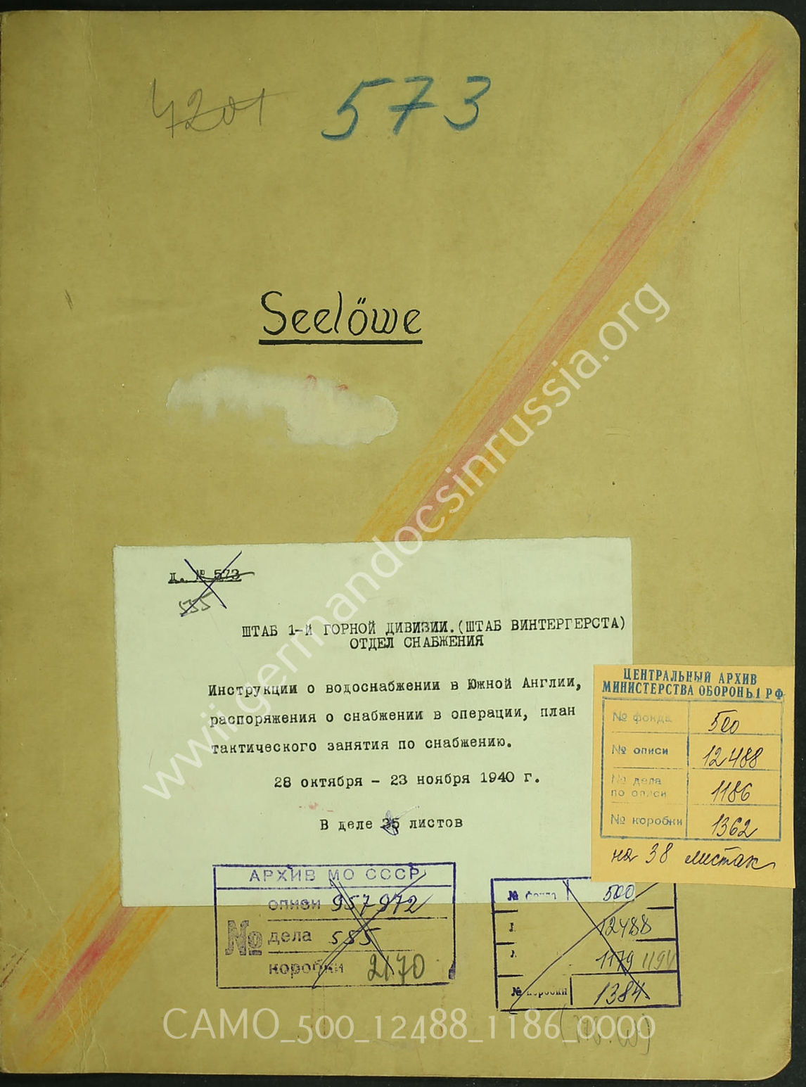 Top CAMO - Bestand 500 Findbuch 12488 - Unterlagen Operation "Seelöwe" Akte 1186: Unterlagen der IVa-Abteilung der 1. Gebirgsdivision: Mer...