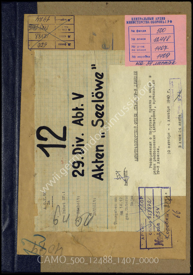 Top CAMO - Bestand 500 Findbuch 12488 - Unterlagen Operation "Seelöwe" Akte 1407: Unterlagen der V-Abteilung der 29. Infanteriedivision: A...