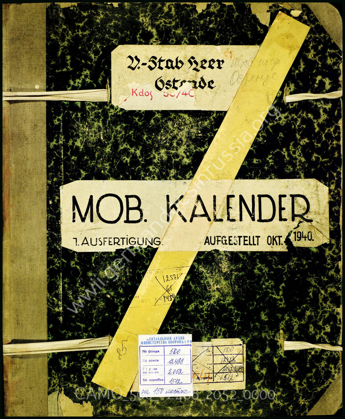 Akte 2052: Unterlagen der Ia-Abteilung des Verladestabes Ostende: Anlagenverzeichnis für den Mobilmachungskalender des Verladestabes, Organisationshinweise, Grundsatzdokumente für die Tätigkeit des Ablaufstabes Krantz u.a.