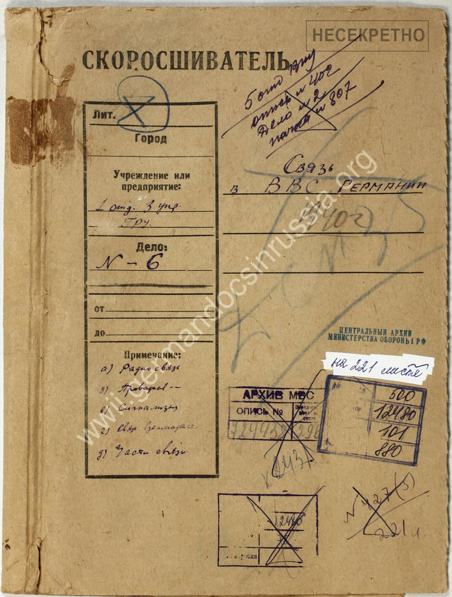 Top CAMO - Bestand 500 Findbuch 12480 - Beutedokumente der sowjetischen Militäraufklärung Akte 101. Akte 6 der 1. Abteilung der 3. Verwaltung der Hauptverwal...