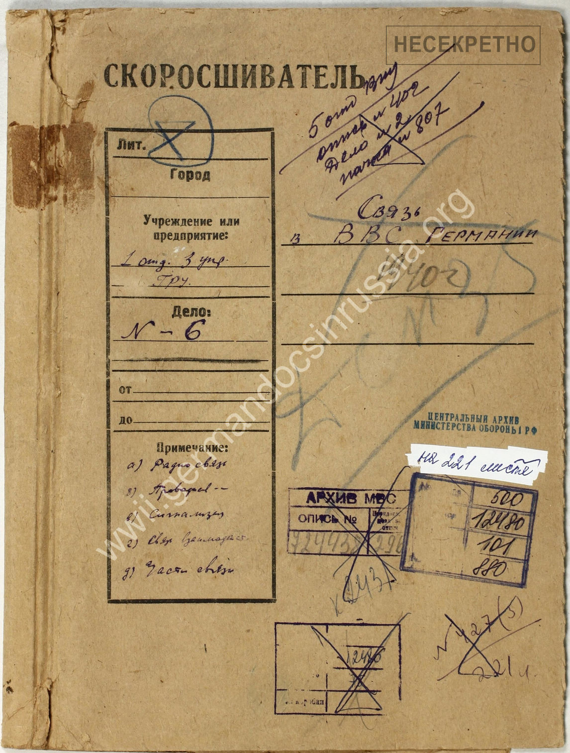 Akte 101. Akte 6 der 1. Abteilung der 3. Verwaltung der Hauptverwaltung Aufklärung (GRU) der Roten Armee: Das Nachrichtenwesen der deutschen Luftwaffe