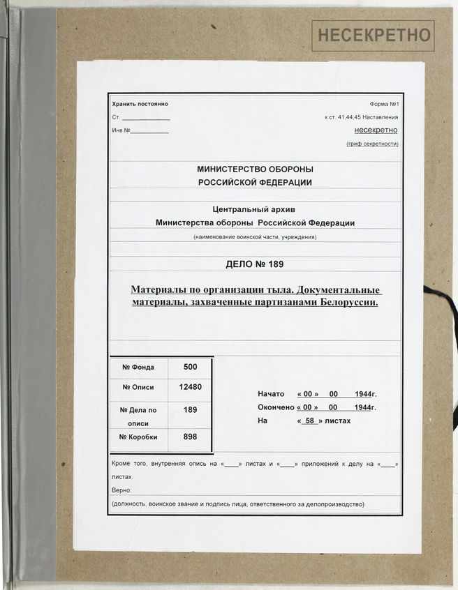Top CAMO - Bestand 500 Findbuch 12480 - Beutedokumente der sowjetischen Militäraufklärung Akte 189. Akte Nr. 42/r-2-1944 der 4. Abteilung (Auswertung) der Ve...