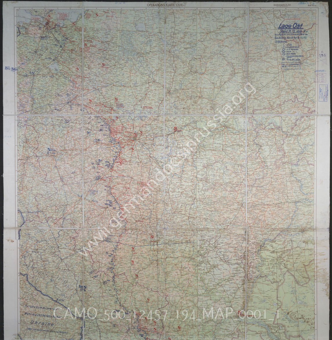 Akte 194: Unterlagen der Operationsabteilung IIIb des Generalstabs des Heeres im OKH: Karte „Lage Ost“ – Karte zur Lage der Truppen der Wehrmacht an der deutsch-sowjetischen Front, einschließlich der Lage der Verbände der Roten Armee, Stand 31.12.1941