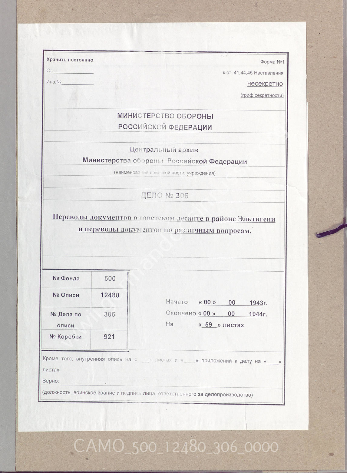 Top CAMO - Bestand 500 Findbuch 12480 - Beutedokumente der sowjetischen Militäraufklärung Akte 306. Akte 14/1944 der 4. Abteilung (Auswertung) der Aufklärung...