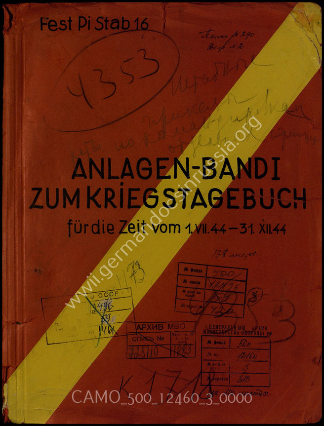 Akte 3: Unterlagen der Ia-Abteilung des Festungs-Pionierstabes 16: Anlagenband 1 zum KTB Nr. 3 des Festungs-Pionierstabes 16, 1.7.-31.12.1944 – Befehle, Tätigkeitsberichte, Besprechungsnotizen, Funksprüche, Lagemeldungen u.a.