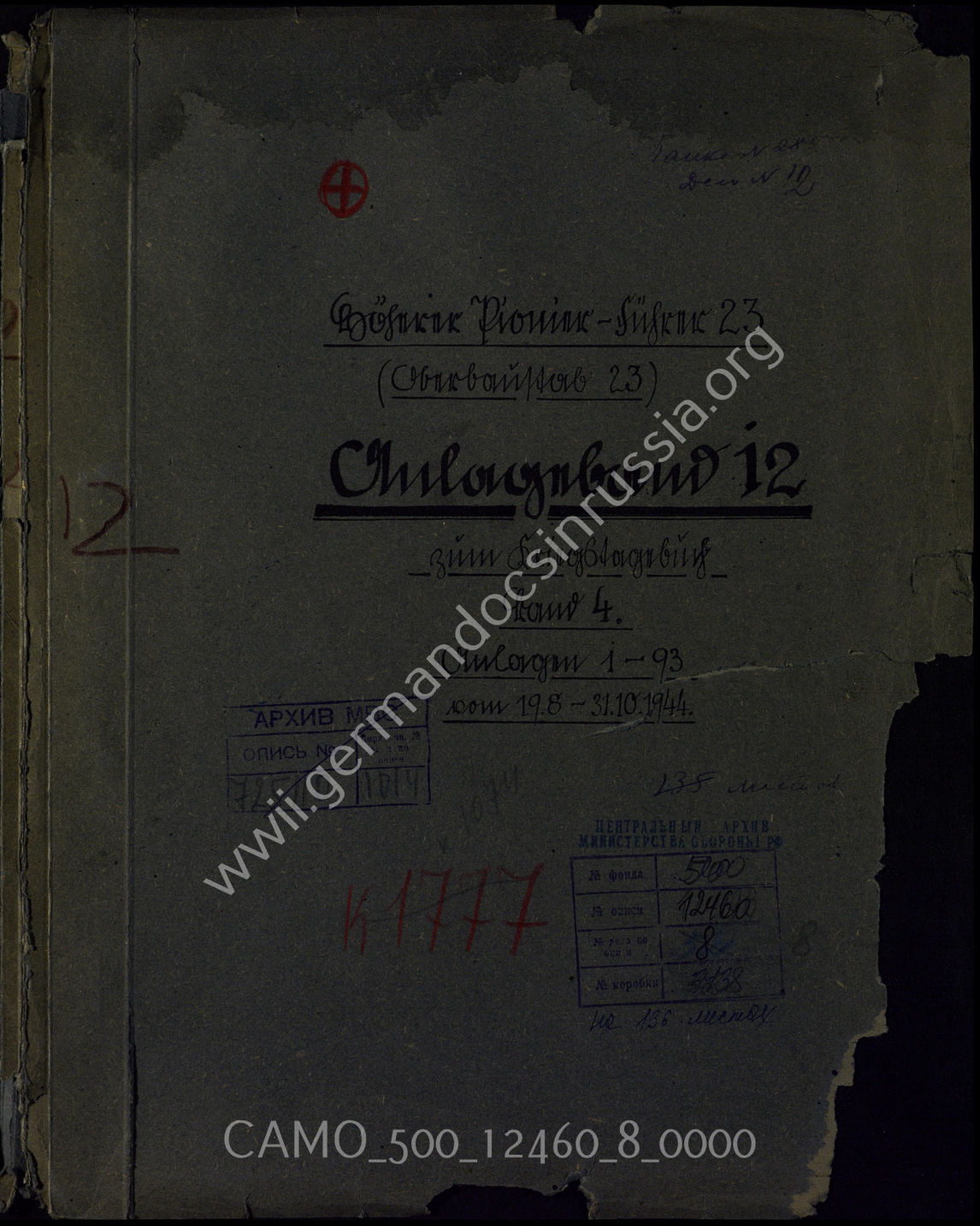 Akte 8: Unterlagen der Ia-Abteilung des Höheren Pionierführers 23: Anlagen zum KTB des Höheren Pionierführers 23, Bd. 12, 19.8.-31.10.1944 – Erkundungsberichte, Verlustmeldungen, Besprechungsnotizen u.a.