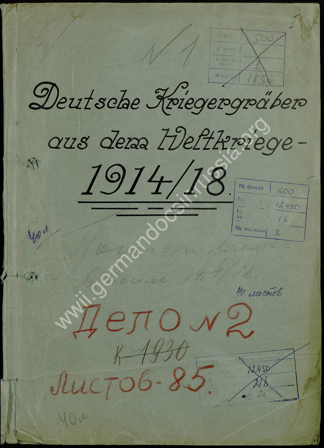 Top CAMO - Bestand 500 Findbuch 12450 - Oberkommando der Wehrmacht (OKW) Akte 16. Dokumentation über deutsche Kriegsgräber  aus dem Ersten ...