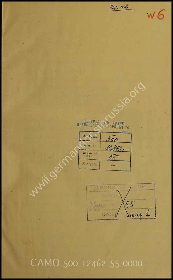 Top CAMO - Bestand 500 Findbuch 12462 - russische Übersetzungen deutscher Akten Akte 55: Unterlagen der kriegsgeschichtlichen Verwaltung des Genera...