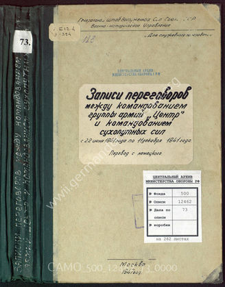 Top CAMO - Bestand 500 Findbuch 12462 - russische Übersetzungen deutscher Akten Akte 73: Unterlagen der kriegsgeschichtlichen Verwaltung des Genera...