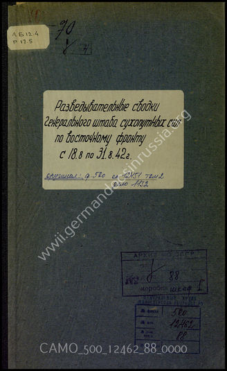 Top CAMO - Bestand 500 Findbuch 12462 - russische Übersetzungen deutscher Akten Akte 88: Unterlagen der kriegsgeschichtlichen Verwaltung des Genera...