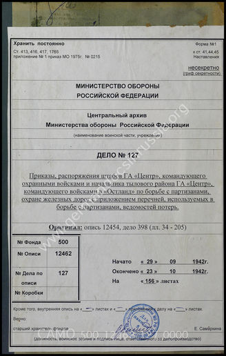 Top CAMO - Bestand 500 Findbuch 12462 - russische Übersetzungen deutscher Akten Akte 127: Unterlagen der kriegsgeschichtlichen Verwaltung des Gener...