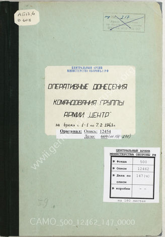 Akte 147: Unterlagen der kriegsgeschichtlichen Verwaltung des Generalstabes der Streitkräfte der UdSSR: Übersetzung von Dokumenten aus den Anlagen zum KTB der Führungsabteilung der Heeresgruppe Mitte – Akte XVIII, 1.1.1943-7.2.1943