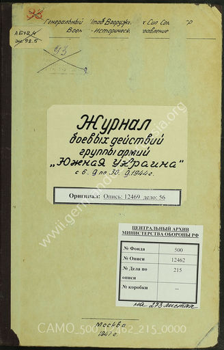 Top CAMO - Bestand 500 Findbuch 12462 - russische Übersetzungen deutscher Akten Akte 215: Unterlagen der kriegsgeschichtlichen Verwaltung des Gener...