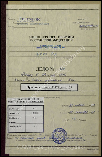 Top CAMO - Bestand 500 Findbuch 12462 - russische Übersetzungen deutscher Akten Akte 320: Unterlagen der kriegsgeschichtlichen Verwaltung des Gener...