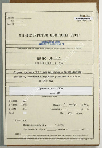 Akte 551: Unterlagen der kriegsgeschichtlichen Verwaltung des Generalstabes der Streitkräfte der UdSSR: Jahresverfügung 1945 des Amts Abwehr im OKW über die Abwehr von Landesverrat, Spionage, Sabotage und Zersetzung in der Wehrmacht, 3.11.1944
