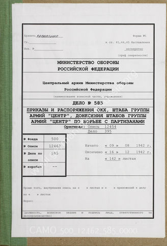 Top CAMO - Bestand 500 Findbuch 12462 - russische Übersetzungen deutscher Akten Akte 585: Unterlagen der kriegsgeschichtlichen Verwaltung des Gener...