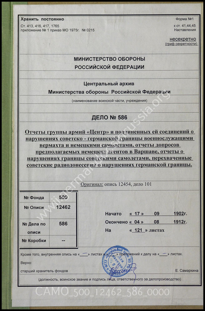 Top CAMO - Bestand 500 Findbuch 12462 - russische Übersetzungen deutscher Akten Akte 586: Unterlagen der kriegsgeschichtlichen Verwaltung des Gener...