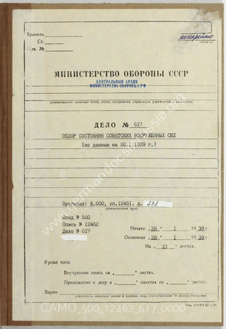 Akte 617: Unterlagen der kriegsgeschichtlichen Verwaltung des Generalstabes der Streitkräfte der UdSSR: Übersetzung von Unterlagen der OKH-Abteilung Fremde Heere Ost – Studie: Kurze Übersicht über die sowjetrussische Wehrmacht, 1.9.1939