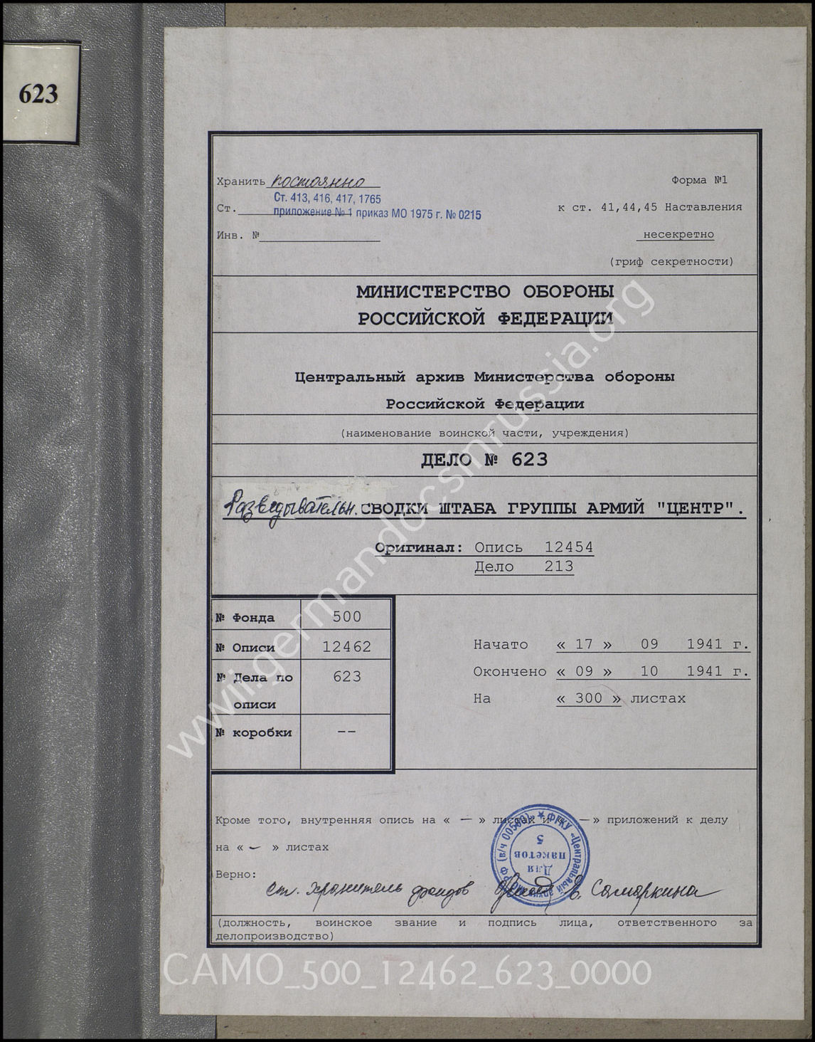Top CAMO - Bestand 500 Findbuch 12462 - russische Übersetzungen deutscher Akten Akte 623: Unterlagen der kriegsgeschichtlichen Verwaltung des Gener...