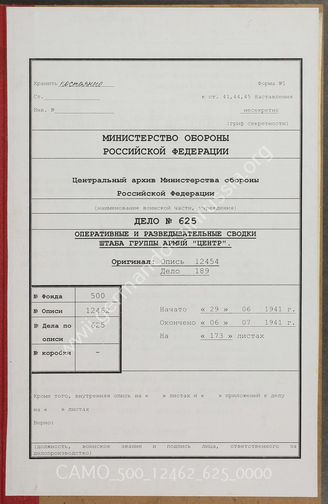 Top CAMO - Bestand 500 Findbuch 12462 - russische Übersetzungen deutscher Akten Akte 625: Unterlagen der kriegsgeschichtlichen Verwaltung des Gener...