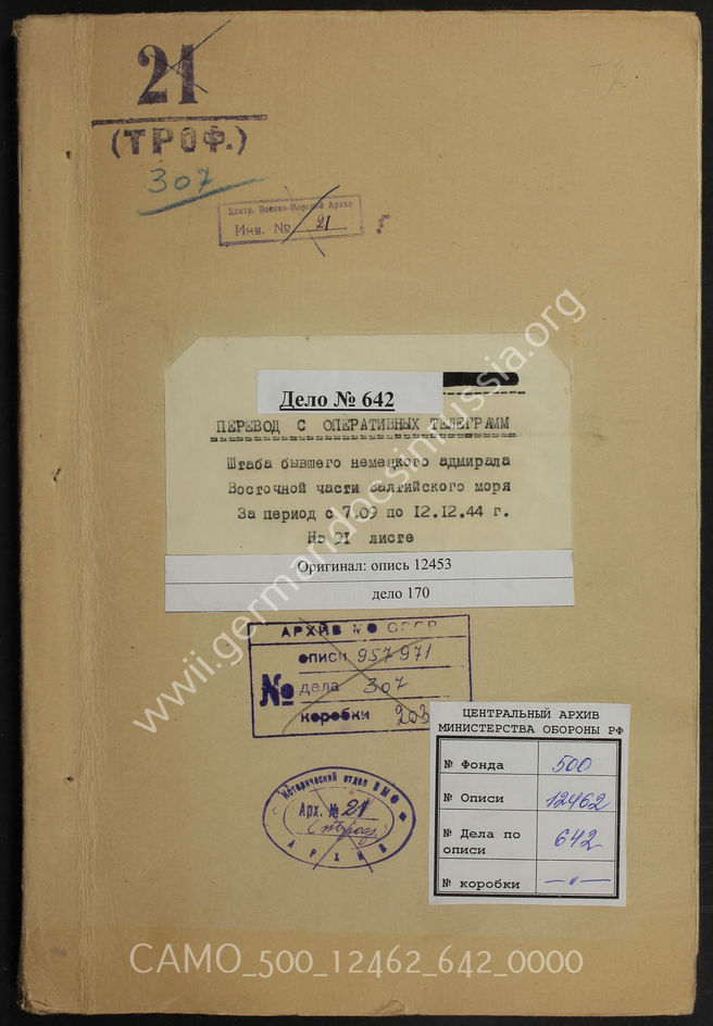 Top CAMO - Bestand 500 Findbuch 12462 - russische Übersetzungen deutscher Akten Akte 642: Unterlagen der kriegsgeschichtlichen Abteilung der Seestr...