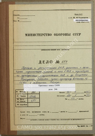 Top CAMO - Bestand 500 Findbuch 12462 - russische Übersetzungen deutscher Akten Akte 654: Unterlagen der kriegsgeschichtlichen Verwaltung des Gener...