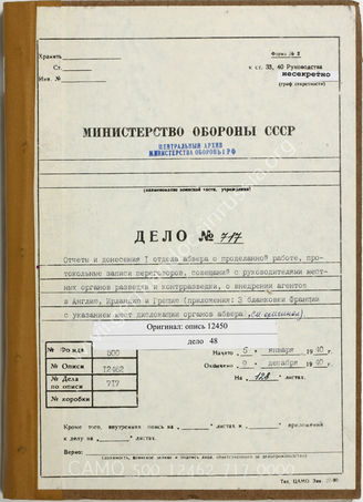 Akte 717: Unterlagen des Übersetzungsbüros des 6. Archivdepots des CAMO: Übersetzung von Unterlagen der Abteilung Abwehr I H(eer) West im OKW – Berichte und Meldungen des Amtes Ausland / Abwehr im OKW u.a., 6.1.1940-9.12.1940