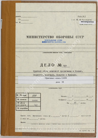 Akte 727: Unterlagen des Übersetzungsbüros des 6. Archivdepots des CAMO: Übersetzung der Ausarbeitung „Die Wirkung der Wehrmachtspropaganda in den Feind“ – zur Propaganda der Wehrmacht in Polen, Norwegen, Holland, Belgien und Frankreich, 1940