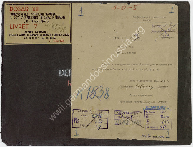 Akte 106. Album "Beitrag der rumänischen Streitkräfte im Krieg gegen die UdSSR vom 22. Juni 1941...