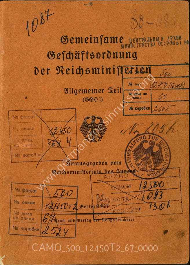 Top CAMO - Bestand 500 Findbuch 12450, Bd. 2 - Oberkommando der Wehrmacht (OKW) Akte 67: Gemeinsame Geschäftsordnung der Reichsministerien, Allgeme...