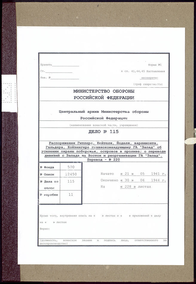 Top CAMO - Bestand 500 Findbuch 12450 - Oberkommando der Wehrmacht (OKW) Akte 115. Befehle und Anorndungen des Oberkommandos der Wehrmacht,...