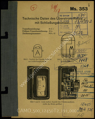 Top CAMO - Bestand 500 Findbuch 12450, Bd. 2 - Oberkommando der Wehrmacht (OKW) Akte 191: Ausarbeitung der Siemens & Halske AG: Technische Daten de...