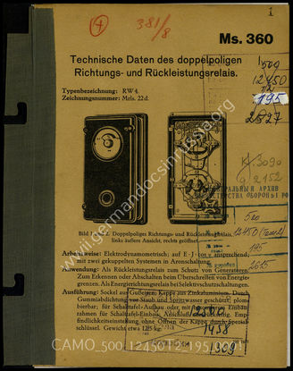 Top CAMO - Bestand 500 Findbuch 12450, Bd. 2 - Oberkommando der Wehrmacht (OKW) Akte 195: Ausarbeitung der Siemens & Halske AG: Technische Daten de...