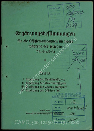 Top CAMO - Bestand 500 Findbuch 12450, Bd. 2 - Oberkommando der Wehrmacht (OKW) Akte 197: Ergänzungsbestimmungen für die Offizierslaufbahnen im Hee...