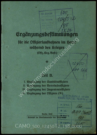 Top CAMO - Bestand 500 Findbuch 12450, Bd. 2 - Oberkommando der Wehrmacht (OKW) Akte 198: Ergänzungsbestimmungen für die Offizierslaufbahnen im Hee...