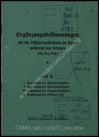 Top CAMO - Bestand 500 Findbuch 12450, Bd. 2 - Oberkommando der Wehrmacht (OKW) Akte 200: Ergänzungsbestimmungen für die Offizierslaufbahnen im Hee...