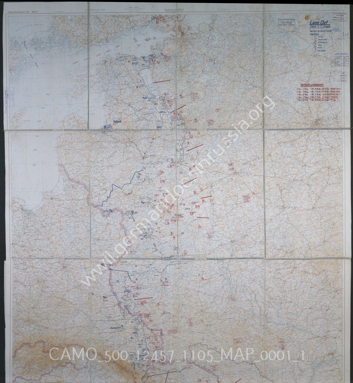 Akte 1105: Unterlagen der Operationsabteilung IIIb des Generalstabs des Heeres im OKH: Karte „Lage Ost“ – Karte zur Lage der Truppen der Wehrmacht an der deutsch-sowjetischen Front, einschließlich der Lage der Verbände der Roten Armee, Stand 04.07.1944
